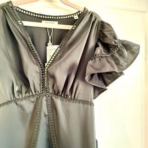 NWT Max Studio Flutter Sleeve Satin Midi Dress in Black.