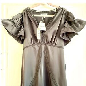 NWT Max Studio Flutter Sleeve Satin Midi Dress in Black. Size XS