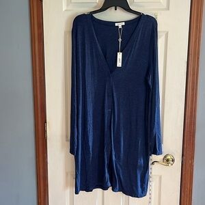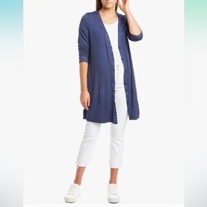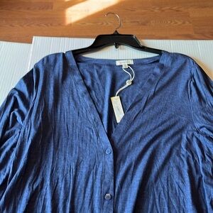 NWT-Max studio-L-indigo(blue)-V-neck, long sleeve, button front, long cardigan.