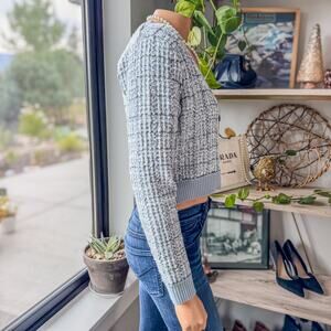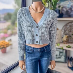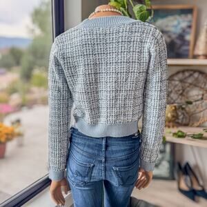 NWT-Miami of Francesca's, Lara Tweed Button Up Crop Blue Cardigan, Women's Small