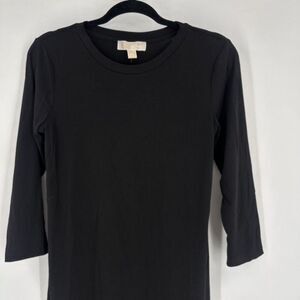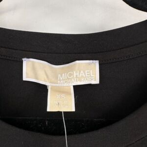NWT Michael Kors Women's Stripe Ruffle Hem 3/4 Sleeve Shift Dress Black White XS