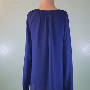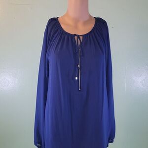 NWT Michael Michael Kors Womens Blue Long Sleeve Half Zip Pullover Blouse Top S