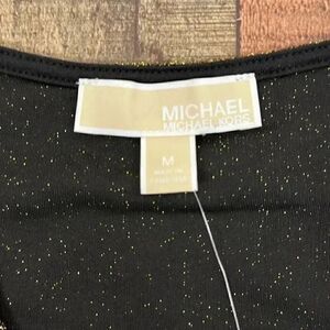 NWT Michael Kors Faux Tie Wrap Black/Gold Blouse. Please see photos for measurements.