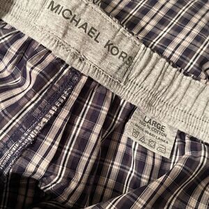 Mens brand new 100% cotton sleep bottoms in blue and white plaid pattern.
