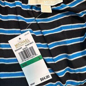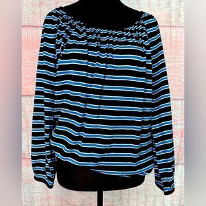 Blue and black cotton top with elastic bottom for cute blousing effect. Brand new. Size L, Michael Kors.