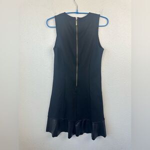 super cute black dress with fake leather bottom! measures 16 inches armpit to armpit and 36 inches shoulder to hem