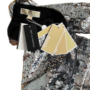 $495 NWT MICHAEL MICHAEL KORS Sequined Georgette Ruffled Dress. Size 0. Great for Holliday. Accented with hundreds of liquid-like sequins, this show-stopping dress is the ultimate holiday party look. A mock neckline and lightly puffed shoulders lend an ’80s sensibility, while a ruffled mini hemline adds romantic movement. Lined. 53% recycled polyester/47% polyester. Back Zip fastening. Uppers on sleeves. Dry clean.