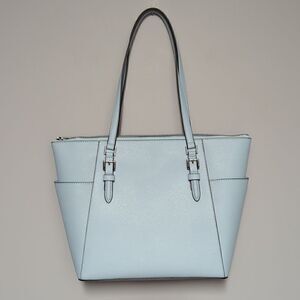 Beautiful vista blue Charlotte Bag. Silver hardware. Two outside pockets. Big inside with zipper pocket and two open pockets.