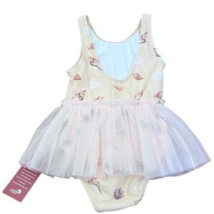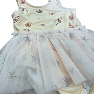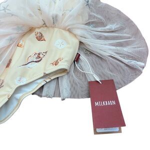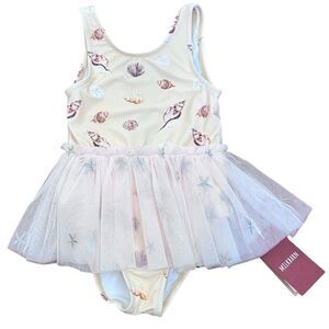 NWT! Milkbarn Ballet Skirt Swimsuit with Shell Print Size 2-3Y