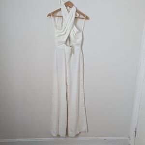 NWT Milly white linen Eda crisscross halter pleated wide leg jumpsuit
