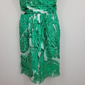 NWT Milly Silk Strapless Dress. Green & White 0#012