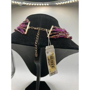 NWT! Monet Adjustable Purple and Pink Beaded Ribbon Boho 16 1/2 inch Necklace!
