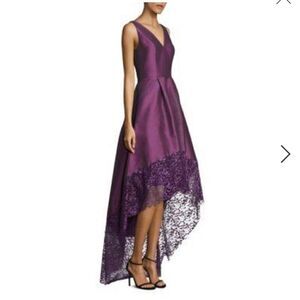Monique Lhuillier Purple Hi Lo Lace Trim Gown