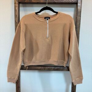 NWT Monrow Tan Quarter Zip Cropped Sweatshirt