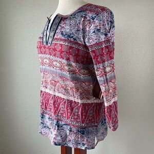 Super cute boho style top by Mutiples featuring beaded embellishments. It measures 19 inches armpit to armpit and 24 inches in length.