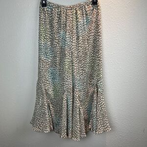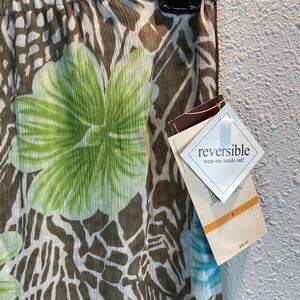 Super cute skirt by Multiples featuring a reversible design. It measures 13 inches at the waist with lots of extra stretch in the elastic waist. It is 36 inches in length. 100% polyester.