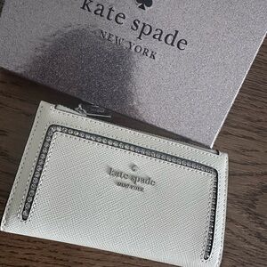 Elegant cream crystal wallet by Kate Spade. Features a sleek design with subtle embellishments.