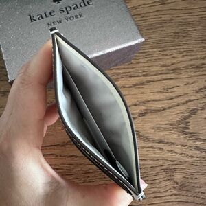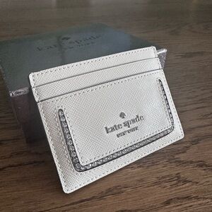 Elegant cream card holder by Kate Spade. Features a sleek design with subtle branding.