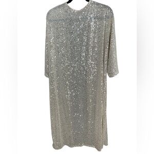 Shimmer in style with this full length dazzling sequined duster with 3/4th length sleeves. You are guaranteed to sparkle with every movement both coming and going. This lightweight open front piece adds a glamorous touch to any outfit. Perfect for evening events or elevating casual looks, it’s a statement layer that exudes elegance and luxury. One size fits most.