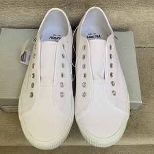 NWT/NIB HURLEY WHITE SLIP ON SNEAKERS. White w/navy bottom trim. Silver grommets. Slip on.