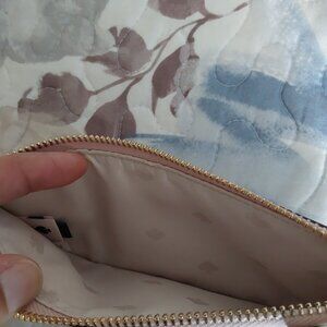NWT/NIB Kate Spade Rose Gold Card Wallet Tinsel Glitter Fabric with Gold raised Kate Spade Logo front slip pocket Zip Top Closure Back Slip Pocket and multiple card slots
