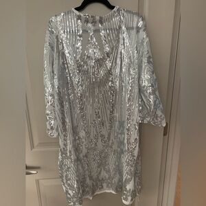NWT/NIB SILVER OS sequin duster. Get your “Shimmer On”this holiday Season!