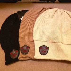 Keep cozy all winter long in UGG® beanie/hat, featuring the brand's new logo patch.