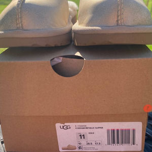 NWT/NIB UGG Kids' Keegan Metallic Gold UGGplush Faux Fur Lined Slippers (Sz 11)