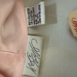 New with tags, new old stock, Lord and Taylor ivory satin night shirt with notched collar and embroidered an appliqué roses in pink and seafoam green. Satin cover button closure and chest pocket. Polyester and cotton satin with a brushed interior that feels almost like your lightweight flannel. The original price tag attached and it’s still attached. Tag size medium. Laying flat measures 36 inches shoulder to hem and 23 inches armpit to armpit.