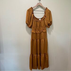 NWT NSR Striped Off-the-Shoulder Tiered Midi Dress sz M