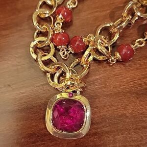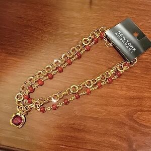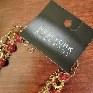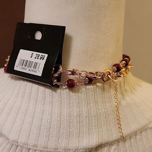 new with tags adjustable choker set. gold tone with ruby colored stones and beads.