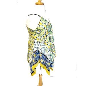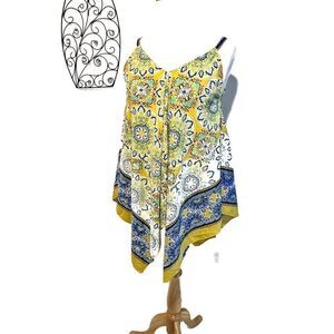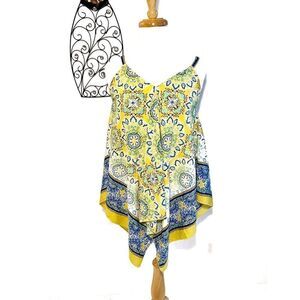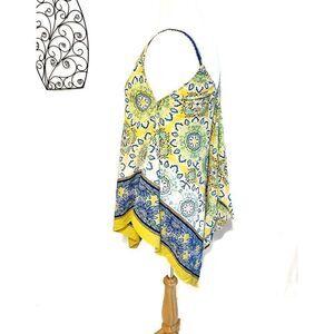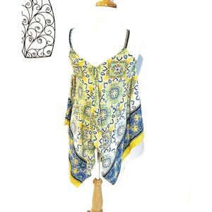 Brand new, lightweight and colorful handkerchief top. V front and back with two thin straps.
