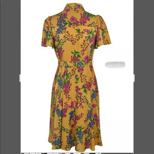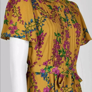 $128 NWT|Nanette Lepore Collared Floral Flutter Dress Grooving Gold Size 8