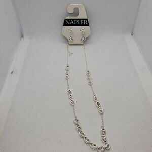 NWT Napier Silver Rhinestone Necklace & Earrings Set