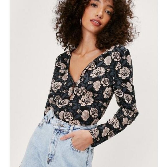 NWT Nasty Gal Black & Tan Floral Button Up Blouse