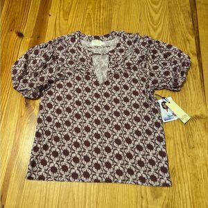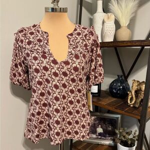 NWT Nation LTD Women's Top Judith Yoked Tee Ikat V-neck Short Sleeve Size LRG