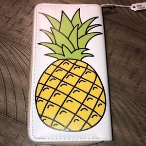 NWT Neon Pineapple 🍍Security Zip Vegan Wallet. Roomy!
