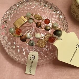New with tags. New Direction (a Macy’s private label brand) double bracelet features goldtone charms and earth tone acrylic beads. Features a magnetic closure. Measures 7” in length. Showing photos of front and back sides which are the same.