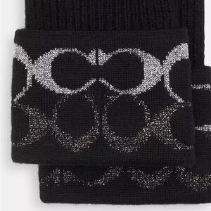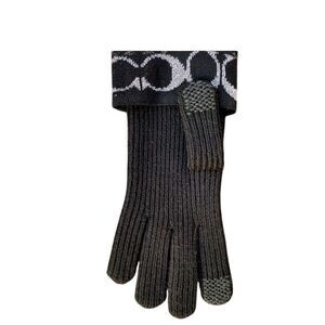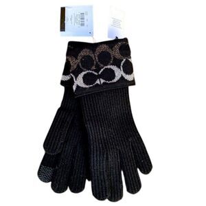 NWT New Women's Coach Black Logo Metallic Knit Tech Gloves/Mittens OS Winter