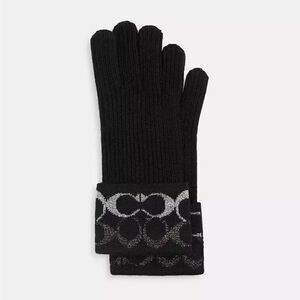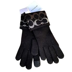 Coach Black Logo Metallic Knit Tech Gloves. New With Tags (NWT)
