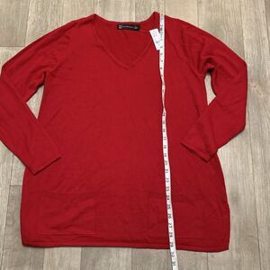 NWT New York & Company Red Holiday V-Neck Pocket Tunic Pullover Sweater
