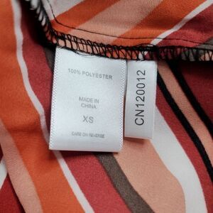 This gorgeous top from New York & Company's Soho Jeans line is defined by a vibrantly striped body in shades of orange, tan, brown & white, a wrapping criss cross bust that transitions into a halter neck which ties in the back. The waist has a thick band in the front & cinching in the back that creates a flattering, form fitting silhouette. Made of breathable, lightweight 100% polyester. Size XS, approx measurements below. New with tags, no flaws, from a SF & PF home!