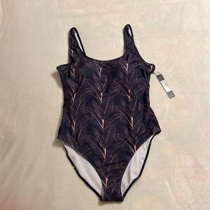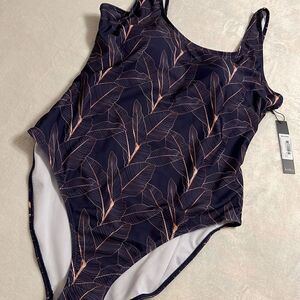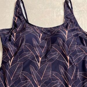 NWT Nicole Miller Dark Purple with Gold Tropical Flowers Swimsuit - Size 2X
