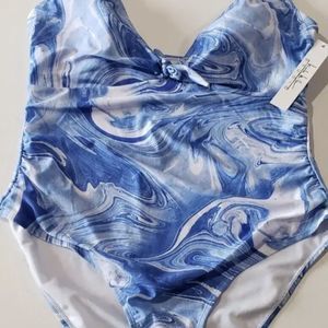 NWT Nicole Miller Women's Plus Size One Piece Swimsuit Blue Tropic Swirl
