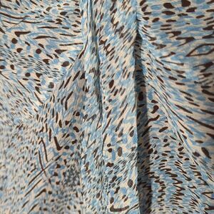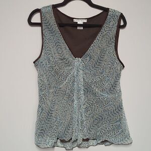 Blue. cream, brown v neck tank top. Sheer overlay brown tank.