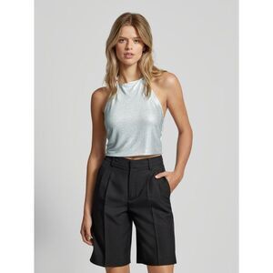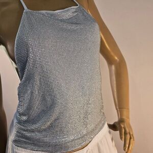 NWT Noisy May Nicola Rhinestone Crop Halter Top IN Silver Detail Sequin Sz M/L
