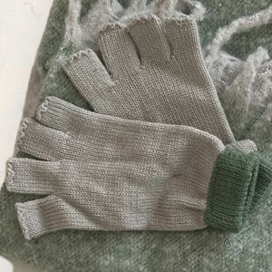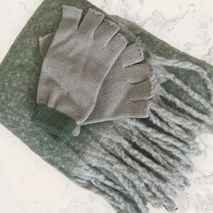 NWT Nordstrom BP. Women's Colorblock Scarf & Fingerless Gloves Set- One Size - Green Hedge Gray