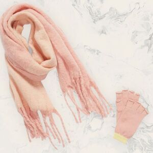 NWT Nordstrom BP. Women’s Pink Coral Apricot Scarf and Fingerless Mittens Set - One Size