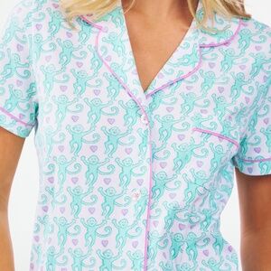 NWTO Roller Rabbit Mint Lovely Monkey Polo Pajamas XS