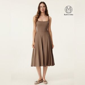 NWT OGL Eco-SkinKiss® Square Neck Flowy New Airy Brami Midi Dress -Iced Mocha